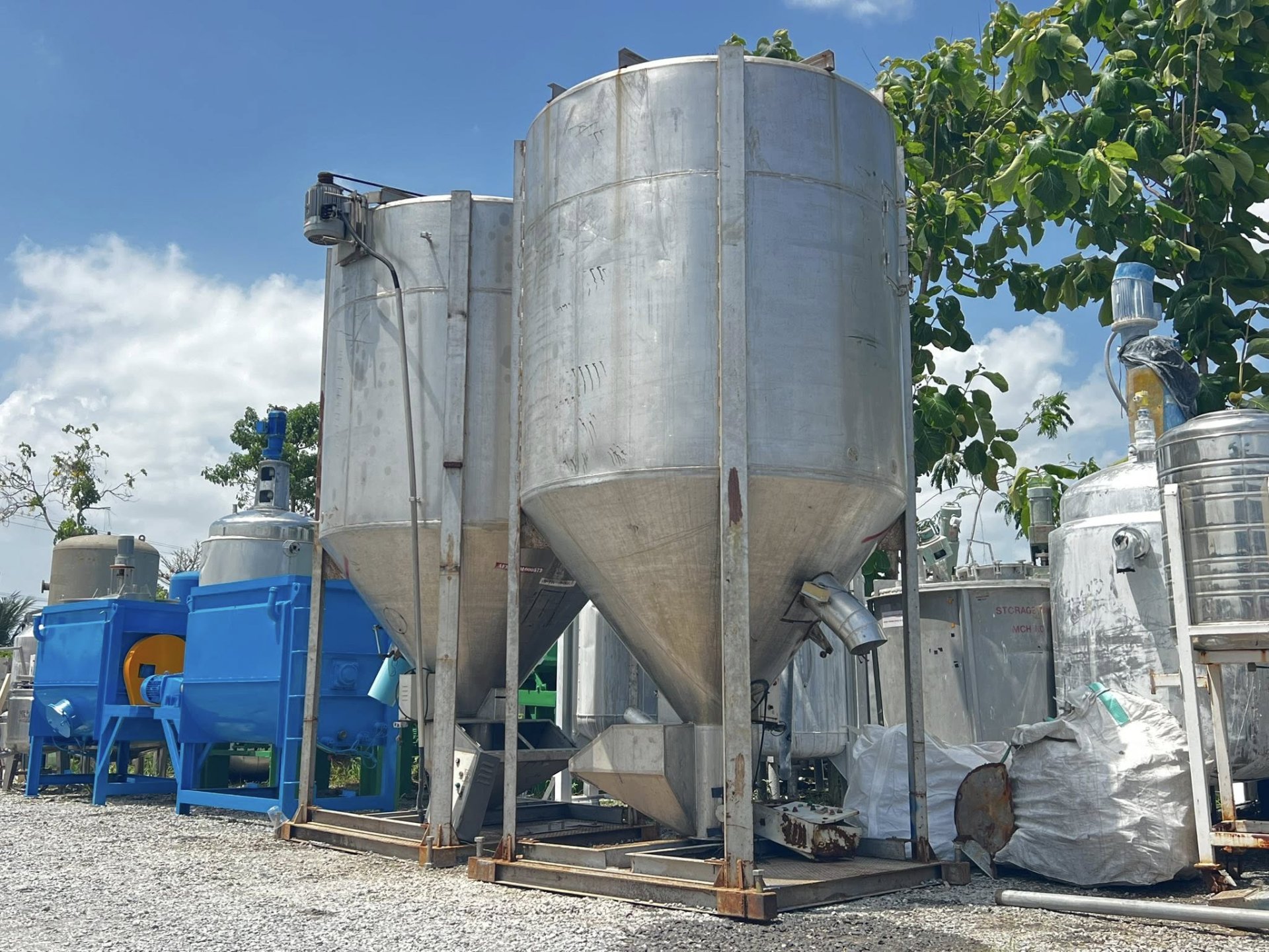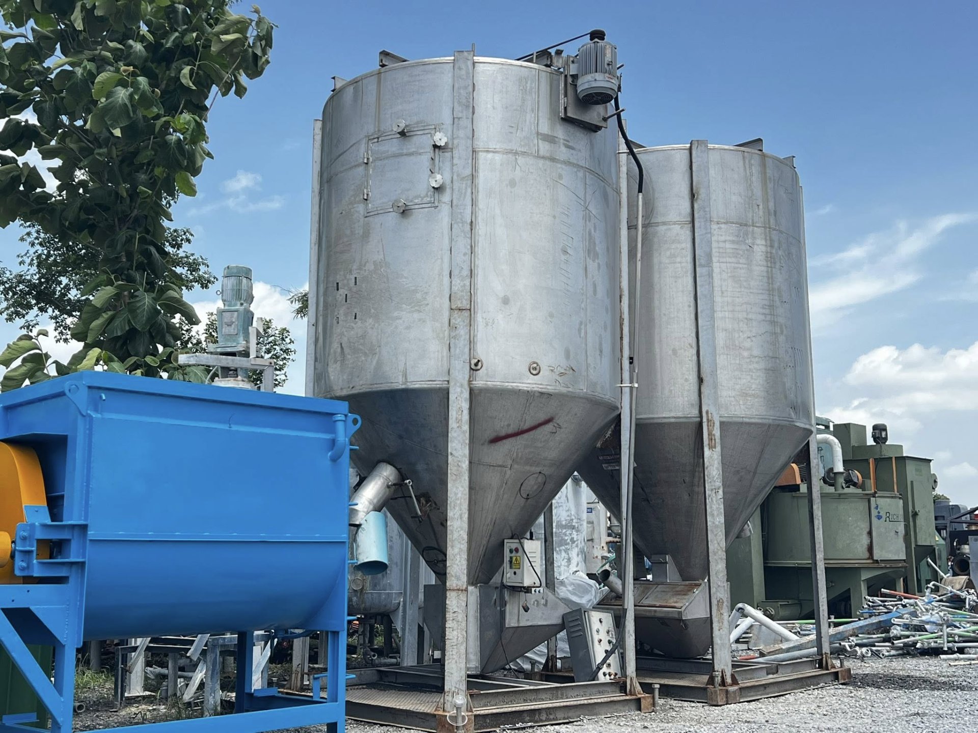 ไซโลผสมวัตถุดิบงานสเตนเลส(Silo Stainless) ขนาด 5000 kg ( 5 ton ) มอเตอร์ต้นกำลัง Mitsubishi 10 HP 380V งานเดิมผสมเม็ดพลาสติก งานสเตนเลสหนาแข็งแรง สภาพสวยตัดมาใหม่ๆ พร้อมใช้งาน