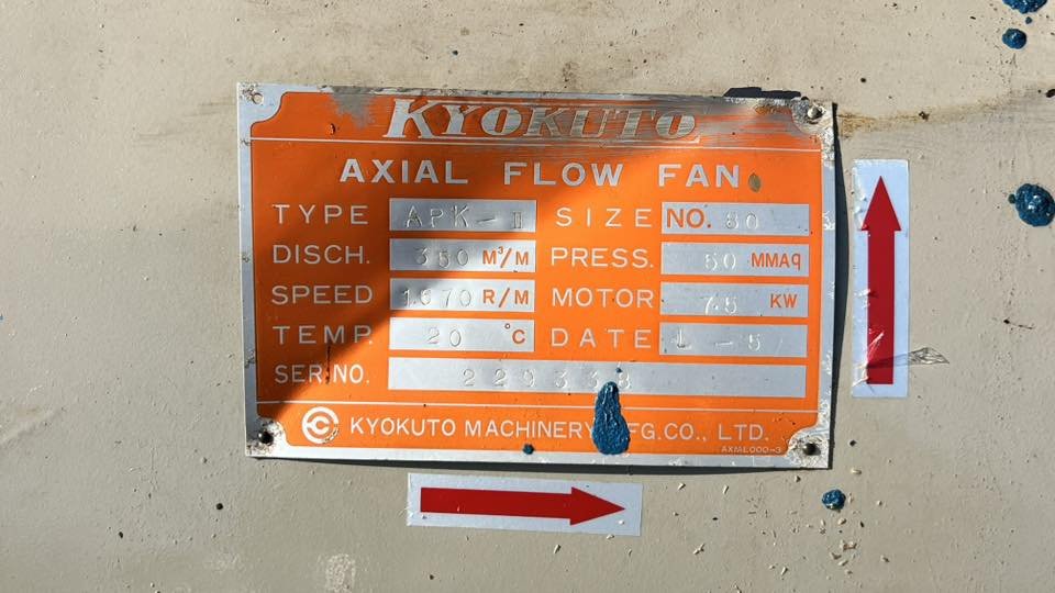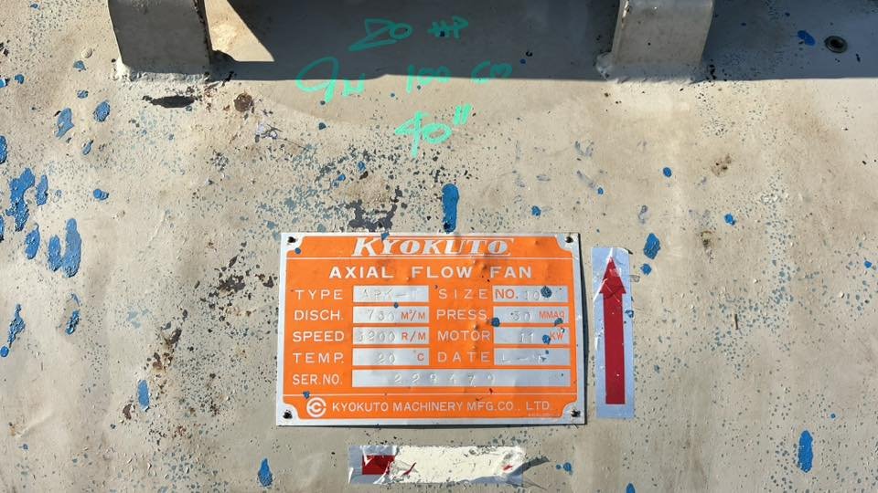 โบลเวอร์ระบายอากาศ_AxialblowerKYOKUTO JAPAN มอเตอร์ Mitsubishi 380V เข้ามา 2 ตัว 10 HP / ใบ 80 cm (32”) 20 HP / ใบ 100 cm (40”)