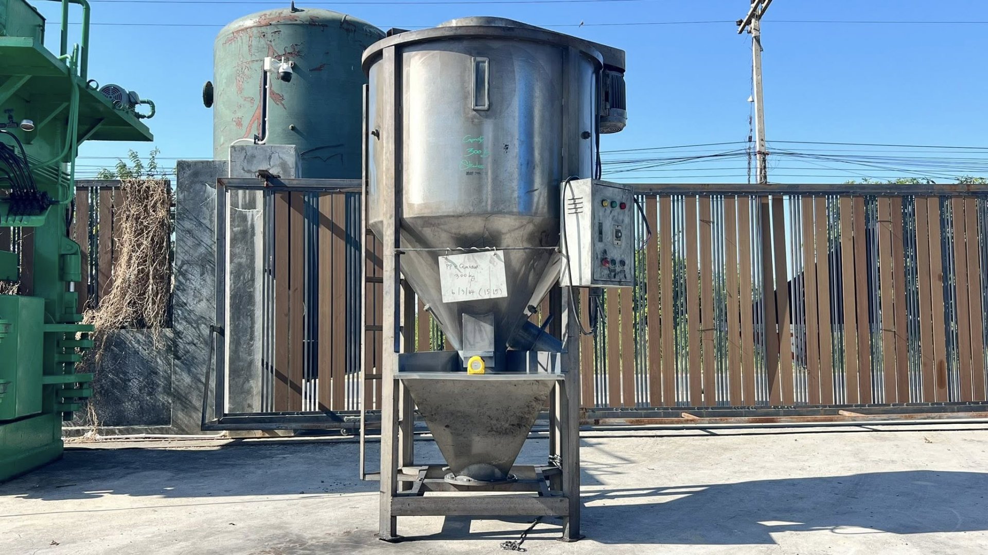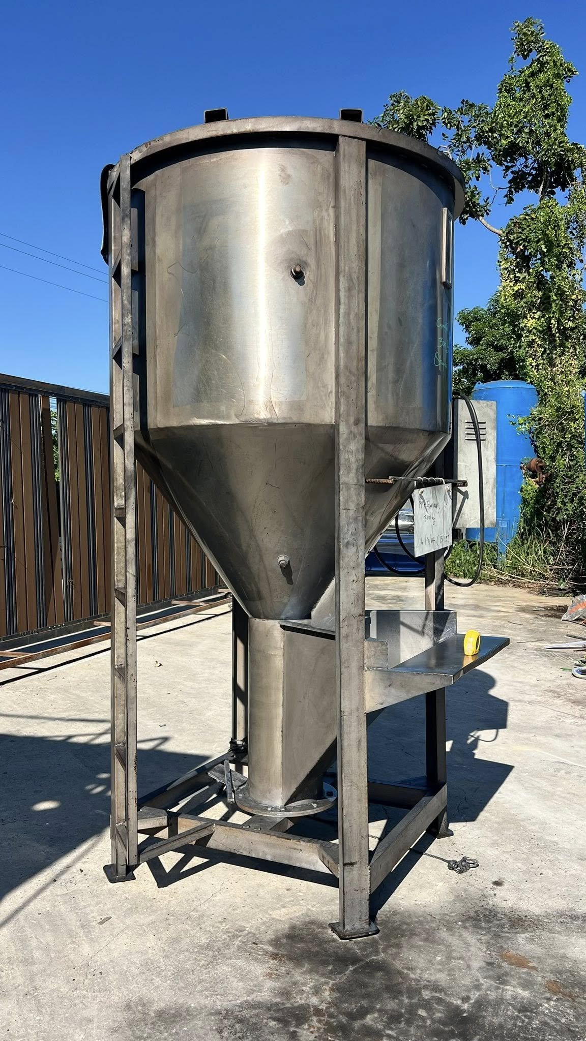 ไซโลผสมวัตถุดิบงานสเตนเลส ขนาดบรรจุ 300 kg งานสเตนเลสทั้งตัวห้องและใบ มีระบบสกรูลำเลียงวัตถุดิบอยู่ด้านใน 380V