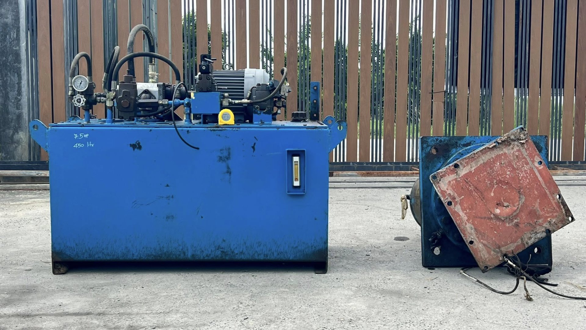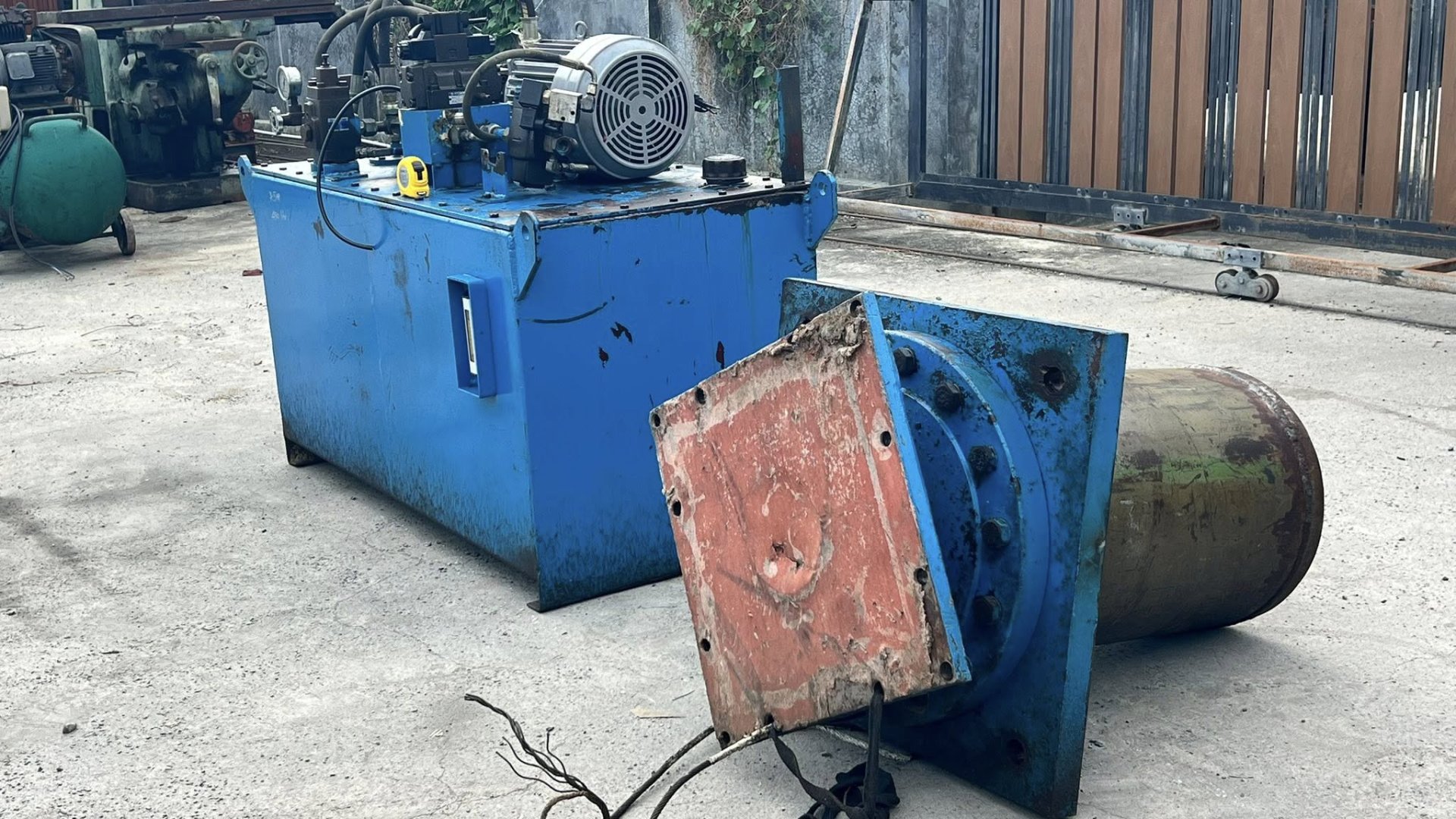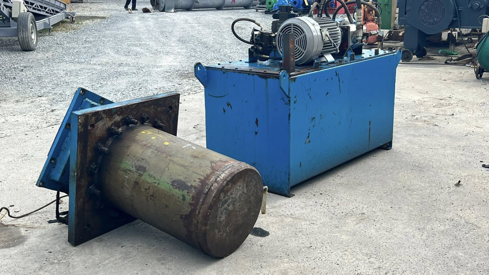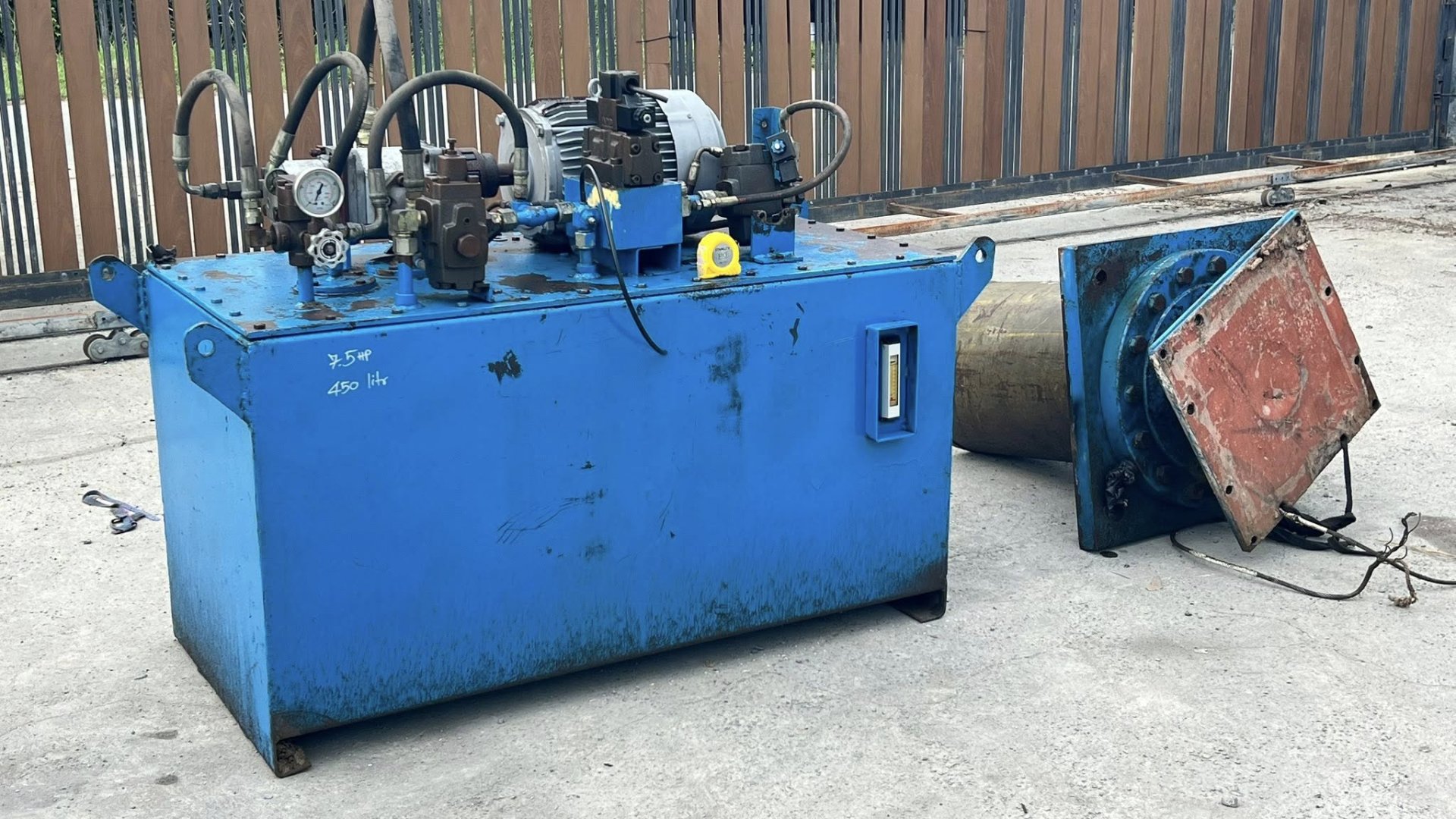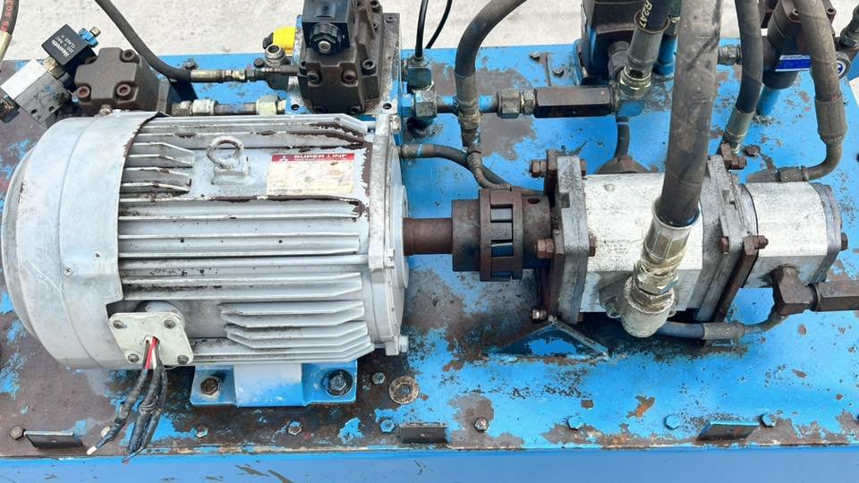 ชุดต้นกำลังปั้มน้ำมันไฮดรอลิค(PowerUnit)ชุดสร้างงานแท่นอัด ขนาด 7.5 HP 380V มาพร้อมกระบอกไฮดรอลิคโตนอก 16”(400 mm) แกน 7”(180 mm) สภาพสวยงานตัดประมูล