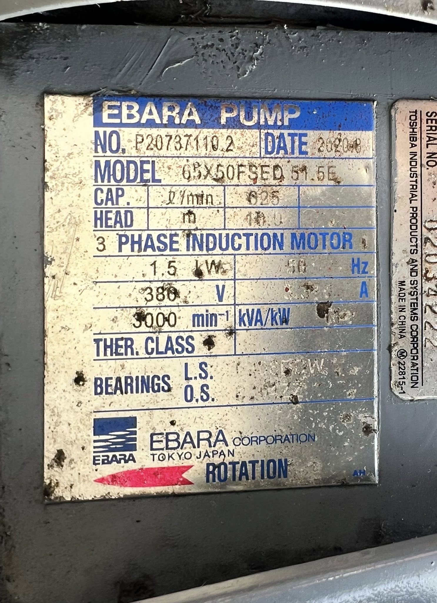 ปั้มน้ำหอยโข่ง EBARA JAPAN ใบพัดสเตนเลส ขนาด 2 HP / ท่อ 2.5”~ 2”380Vเข้ามา 4 ตัว